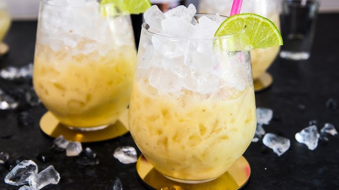 Blend everything until smooth. It’s creamy, tangy, and just sweet enough—like a tropical smoothie with cocktail vibes. You can also use sparkling water to top it off for a fizzy twist.