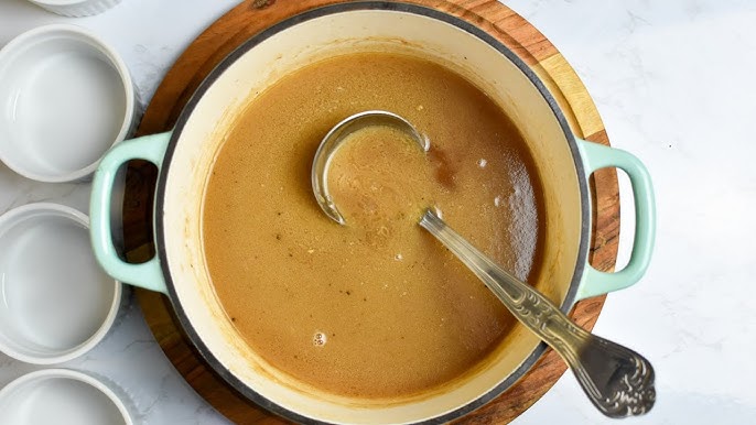 Not sure how much broth to use? A good rule of thumb is 1 cup of broth per 2 tablespoons of drippings.