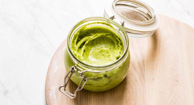 Avocado tends to oxidize quickly, turning brown when exposed to air. But don’t worry—there are tricks to keep your dressing fresh and green. First, transfer your dressing into an airtight container or glass jar. Smooth the top so there are no air pockets, then press a piece of plastic wrap directly onto the surface before sealing the lid.