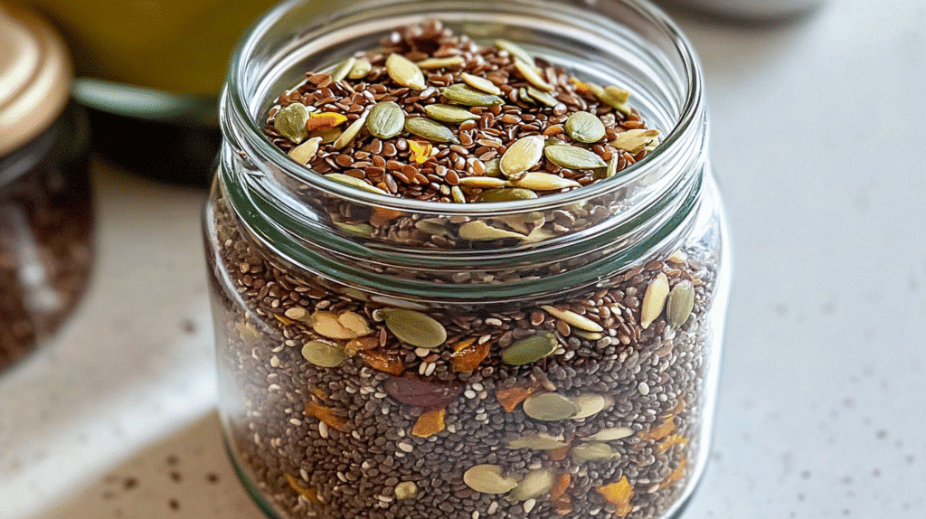 If you’re always on the go, you can also pre-pack seed blends into small containers or zip bags for a quick morning prep.