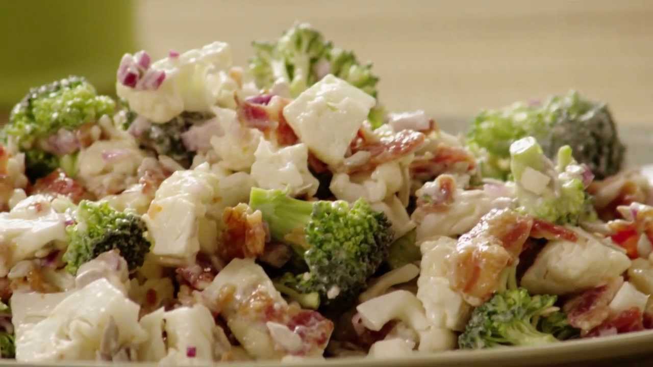 - Ingredients: Fresh broccoli, cauliflower, mayonnaise, sour cream, apple cider vinegar, sugar or honey, cheddar cheese, and crispy bacon bits.