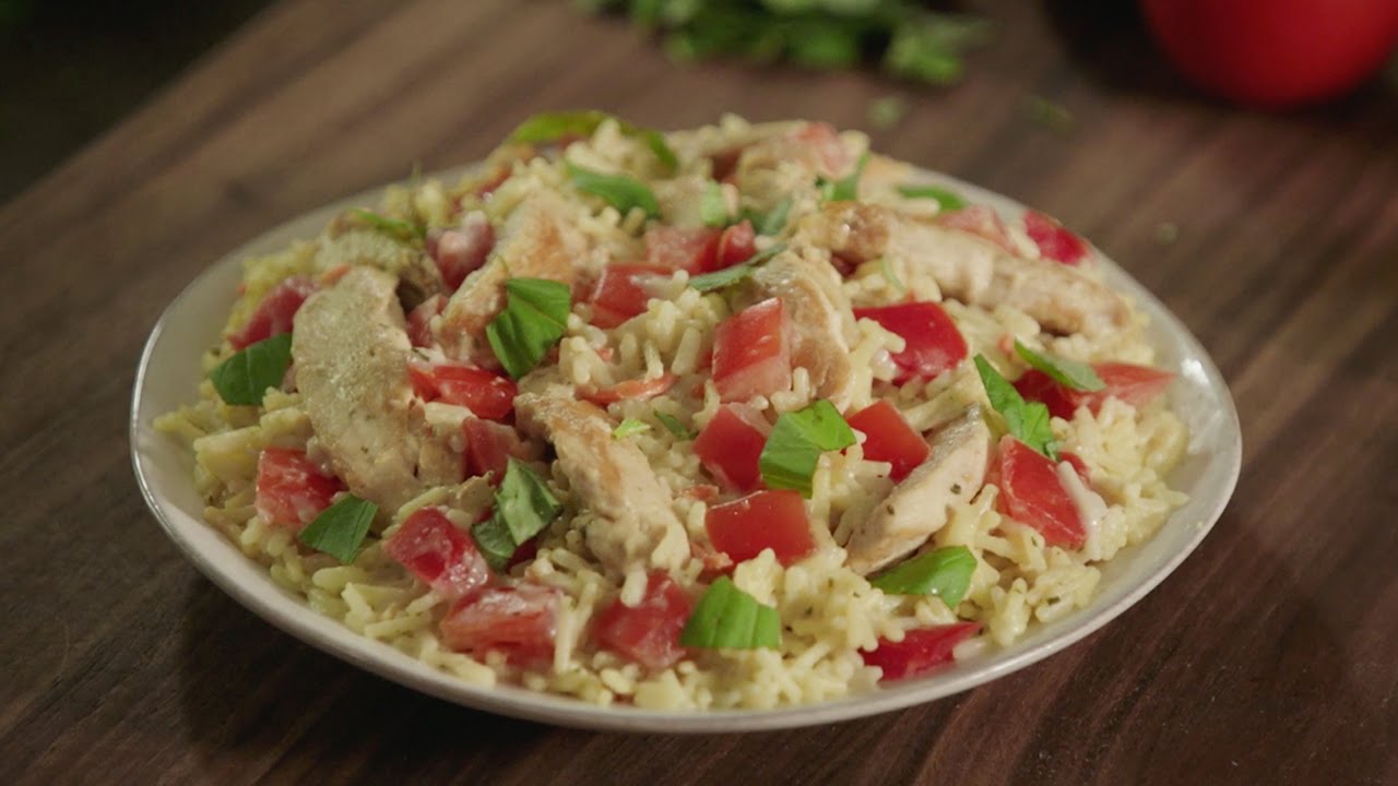 This method keeps the chicken tender and lets the tomato topping get a little warm and juicy—perfect for scooping up with every bite.