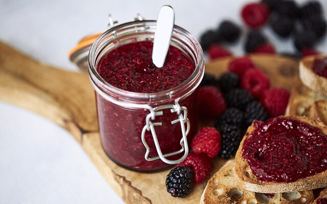 Chia seed jam is great on toast, pancakes, waffles, yogurt, oatmeal, and desserts. It can also be used as a filling for pastries or layered into parfaits. Its fresh fruit flavor makes it very versatile.
