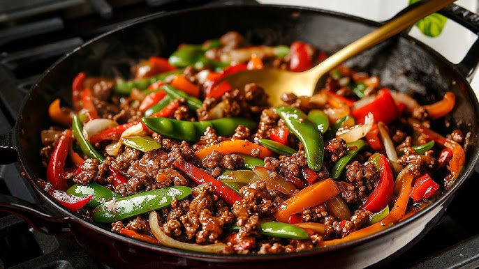 This recipe stands out because it uses simple ingredients to create a complete meal with very little effort. Ground beef cooks quickly, absorbs flavor beautifully, and pairs well with a wide variety of vegetables and sauces. Stir frying also keeps the vegetables vibrant and slightly crisp, which gives the dish a fresh contrast to the rich beef.