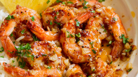 Spoon the shrimp over a bed of steamed white rice. Pour the extra garlic butter sauce from the pan over the top. Serve with lemon wedges on the side.