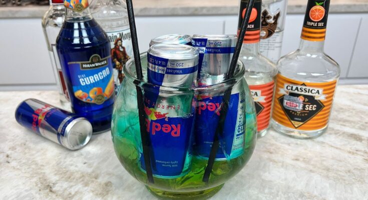 This drink is all about the fun factor. It’s a symbol of celebration, excess, and high energy. The upside-down energy drink adds flair and continuous carbonation — a wild party move that keeps the drink alive long after you’ve started sipping.