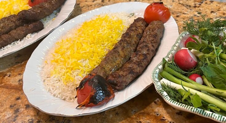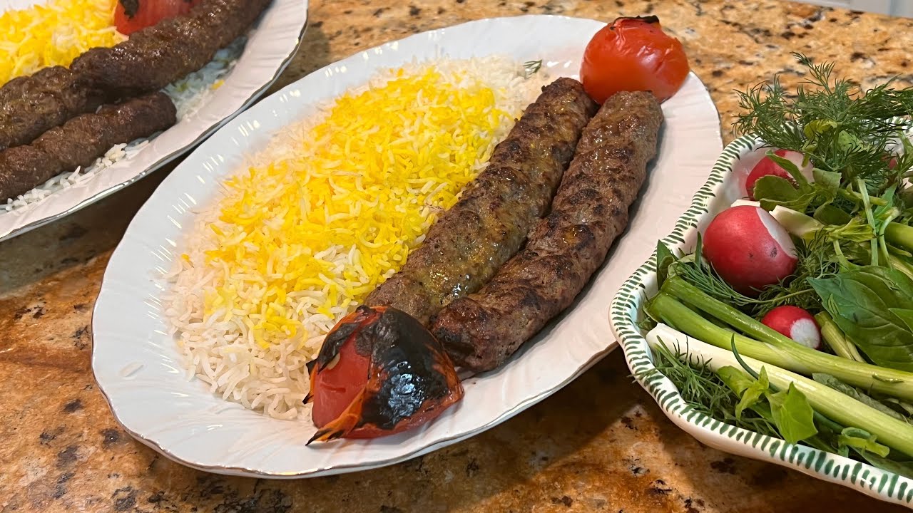 This traditional Persian kebab is usually prepared with ground lamb, ground beef, or a combination of both. It is commonly served with saffron rice, grilled tomatoes, fresh herbs, flatbread, sumac, raw onions, and a touch of butter. When prepared correctly, the kebab stays firmly attached to the skewer, cooks evenly, and remains moist from the inside with a lightly charred exterior.