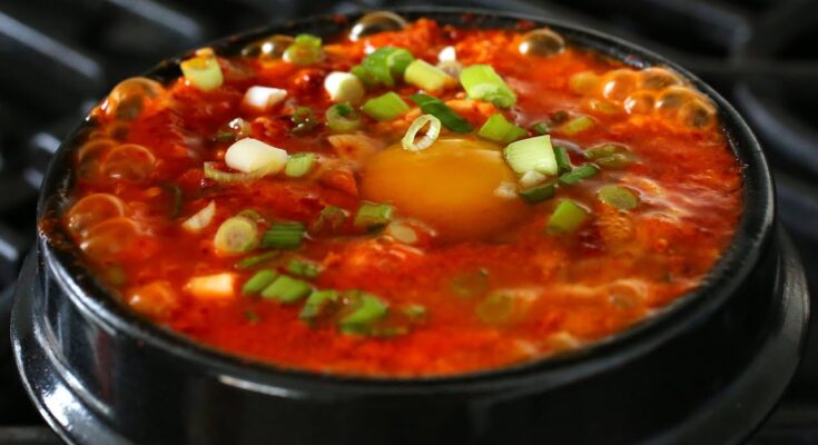 Korean Sundubu Jjigae Recipe: Sundubu Jjigae, also known as Korean soft tofu stew, is one of Korea’s most comforting and flavorful dishes. If you’ve ever dined at a Korean restaurant, you’ve probably seen it bubbling away in a small stone pot, topped with a cracked egg, and served piping hot alongside a bowl of rice. This dish is more than just food—it’s a hug in a bowl, warming you up on cold days while delivering a punch of spice and rich umami flavors.