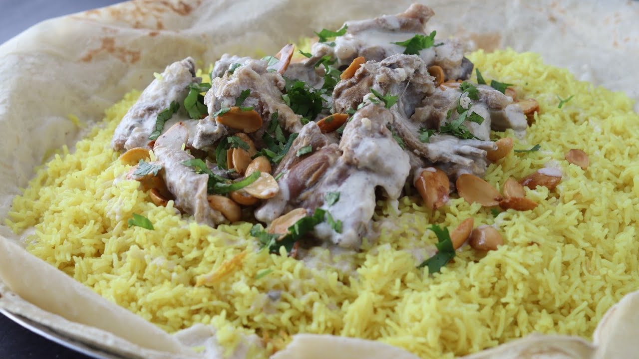 It’s traditionally made with lamb cooked in a fermented dried yogurt sauce called Jameed, served over a bed of rice and thin flatbread, and topped with toasted nuts and herbs. The dish is often eaten communally from a single large platter using the right hand, symbolizing unity and hospitality.