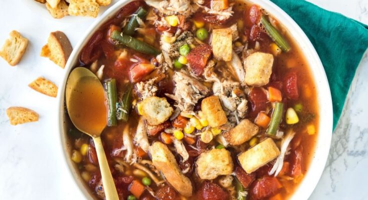 Start by chopping your vegetables—onions, celery, carrots, potatoes, green beans, and corn are classic choices. You’ll also want some canned or fresh tomatoes for the base. Dice everything into bite-sized pieces so they cook evenly in the soup.