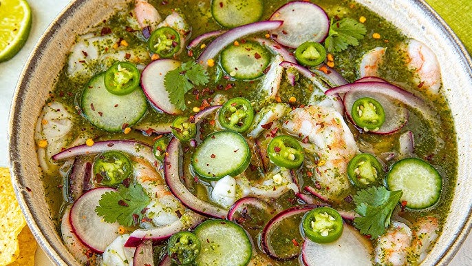 Mexican ceviche is usually made with fresh fish or shrimp, lime juice, tomatoes, onion, cilantro, and chilies. Some versions also include cucumber, avocado, or diced mango for extra flavor and texture.