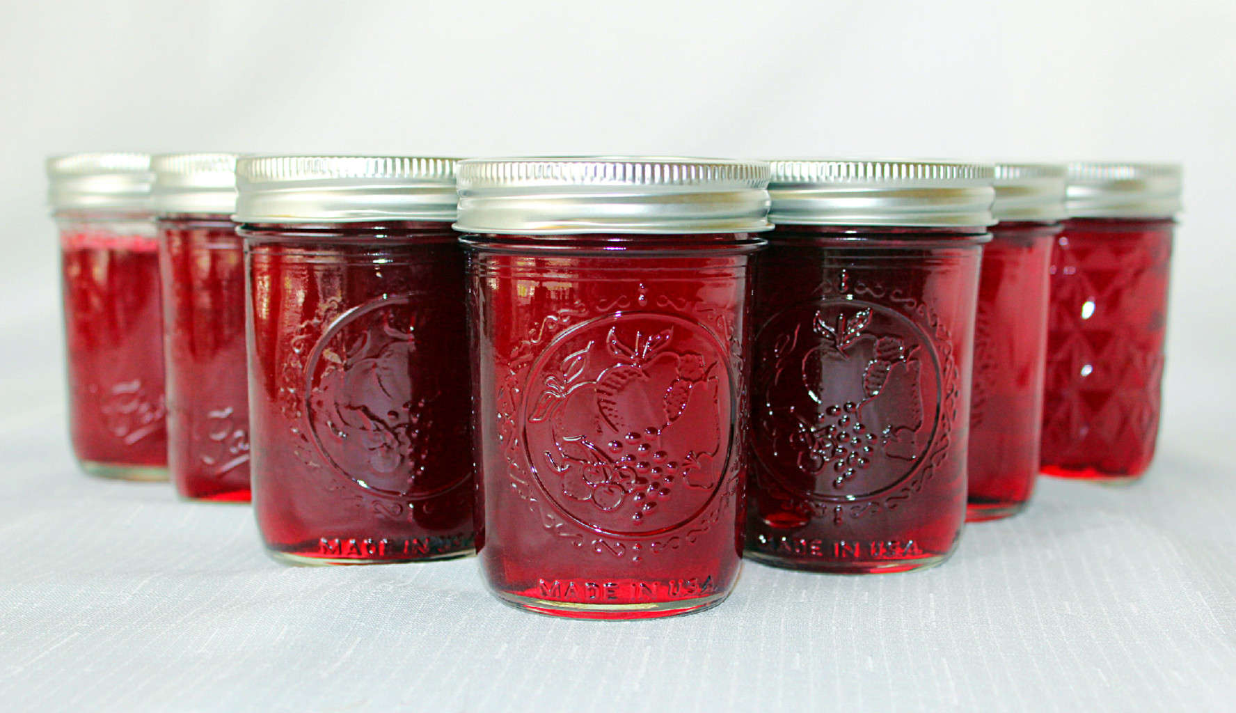 Begin by washing your jars and lids in hot, soapy water. Place the jars in a pot of boiling water for 10 minutes to sterilize them. Keep them hot until ready to fill so they don’t crack when the jelly goes in.