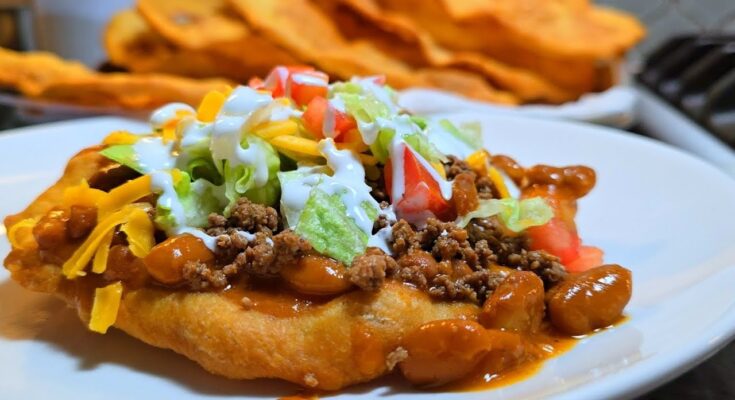 You can also customize your toppings depending on your taste. Try grilled chicken or shredded pork for a protein boost, or go vegetarian with black beans, corn, avocado, and salsa. The fry bread acts as a flavorful edible plate that holds everything together, soaking up juices and enhancing every bite.