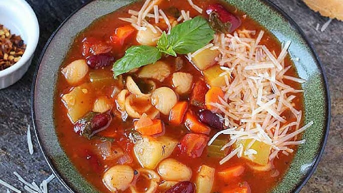 Olive Garden minestrone soup is a hearty vegetable soup made with beans, pasta, tomatoes, and mixed vegetables in a flavorful broth. It is known for being light, filling, and full of comforting flavor.