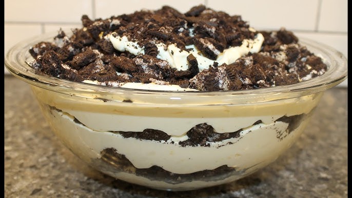 Yes, a trifle dish works beautifully to show off the layers of Oreo crumbs, pudding, and cream cheese mixture. It also adds a wow factor for parties.