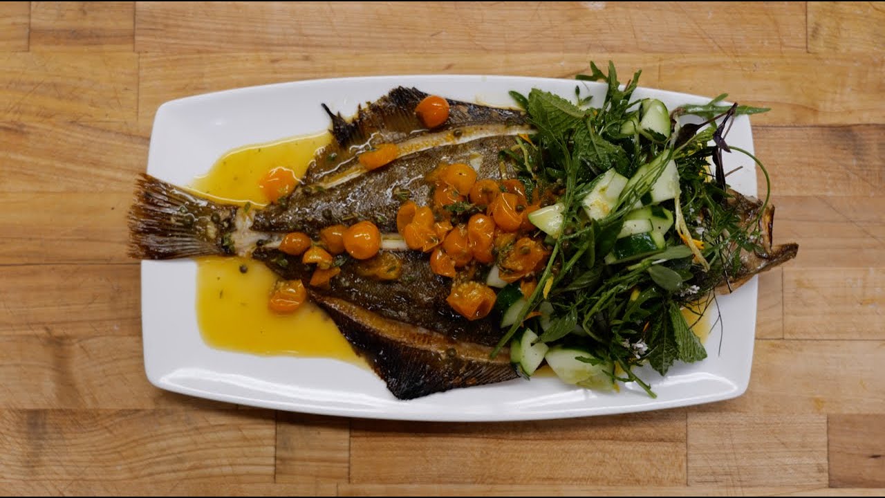 A crisp salad adds freshness to the plate. We can serve petrale sole with arugula salad, cucumber salad, mixed greens, tomato salad, or fennel citrus salad.