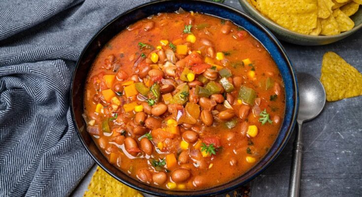 To make a delicious vegetarian pinto bean soup, we use vegetable broth and skip the meat. For smoky depth, we add smoked paprika, cumin, and a little tomato paste. We can also add fire-roasted tomatoes for extra richness.