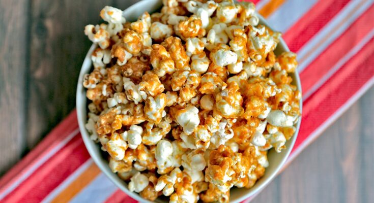 This mix tastes like a caramel apple in popcorn form—perfect for fall parties.