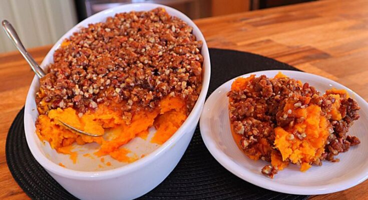 The topping is what makes this dish legendary. It’s not just any crust—it’s a buttery, nutty, caramelized layer that contrasts beautifully with the creamy sweet potatoes.