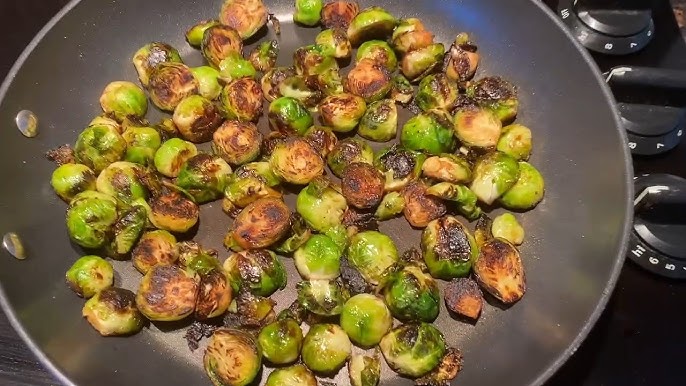 Make sure your pan is wide enough to let the Brussels sprouts sit in a single layer—that’s crucial for even browning. If they’re piled up, they’ll steam instead of sauté, and you’ll lose that signature crisp.