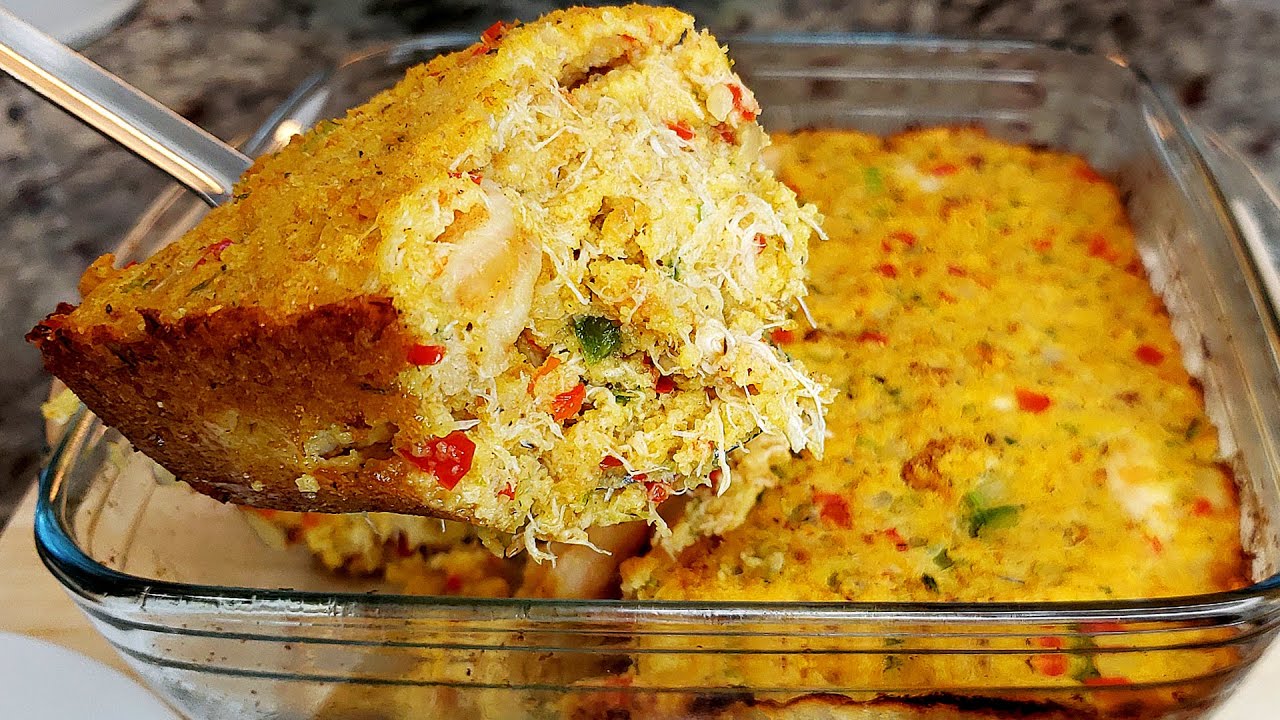 If you’re looking for something rustic and comforting, this variation is for you. The crumbly texture and slightly sweet flavor of cornbread make it the perfect base for a Southern-style seafood dressing.