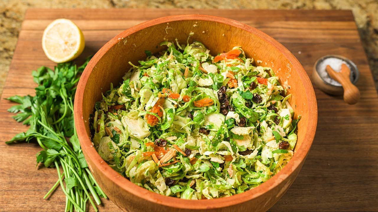 Raw shaved sprouts are a perfect base for slaws and salads. Toss with: