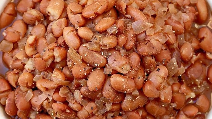 For Southern-style pinto beans, use ham hock or bacon, onion, black pepper, and a little butter. Serve with cornbread and greens.
