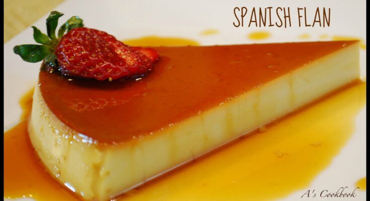 Spanish flan is a smooth, creamy custard dessert topped with a rich caramel sauce. It is made with simple ingredients such as eggs, milk, sugar, and vanilla, then baked gently until set.