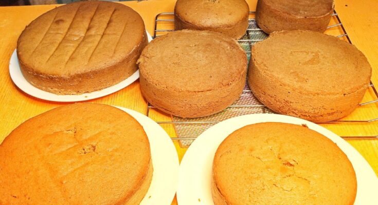Divide the batter into greased cake pans (usually 8-inch or 9-inch rounds). Bake for 25–30 minutes, or until a toothpick comes out clean. Rotate halfway for even baking.