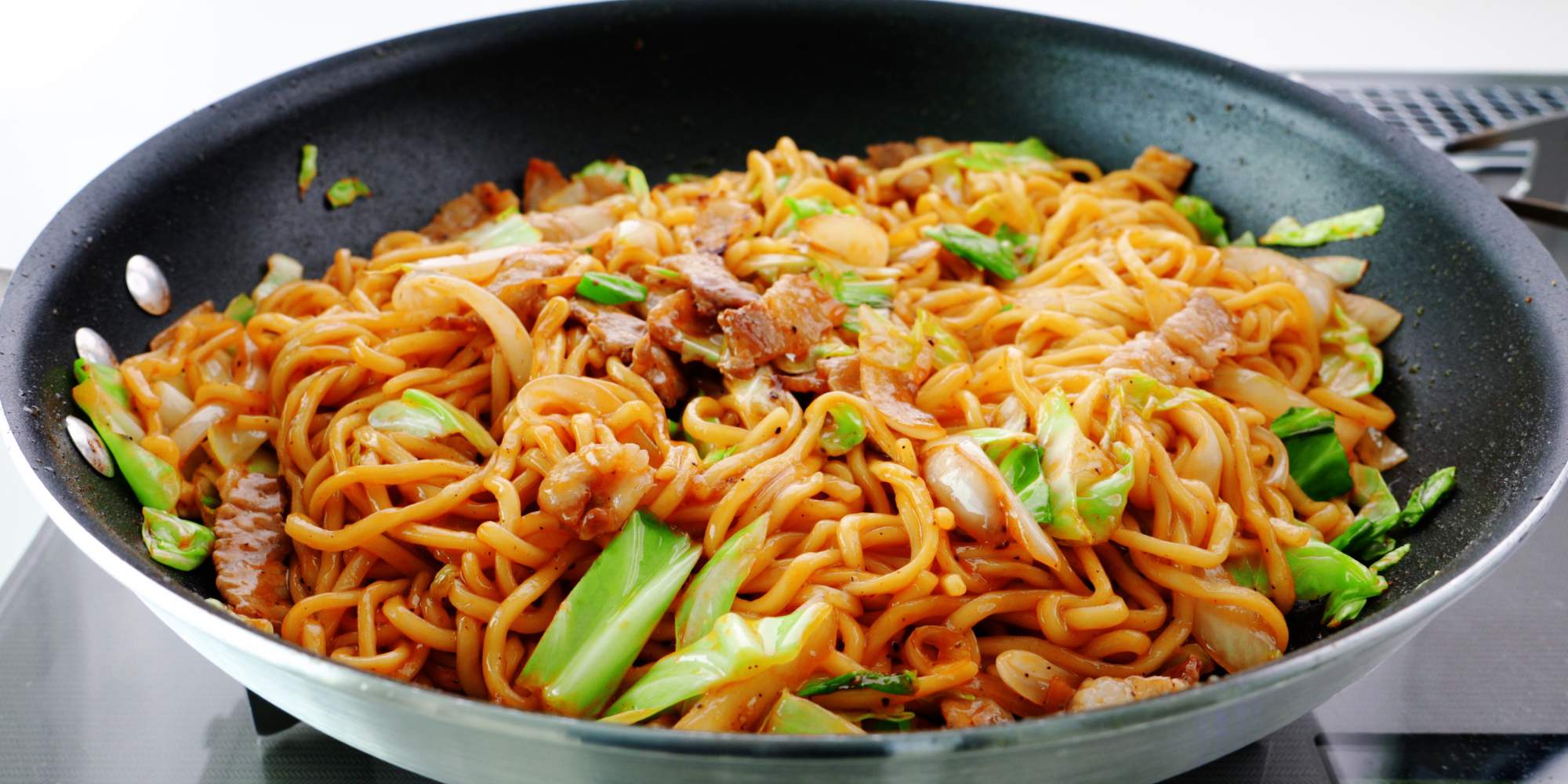 Yakisoba loves high heat, but ingredients should be added in stages to avoid steaming.
